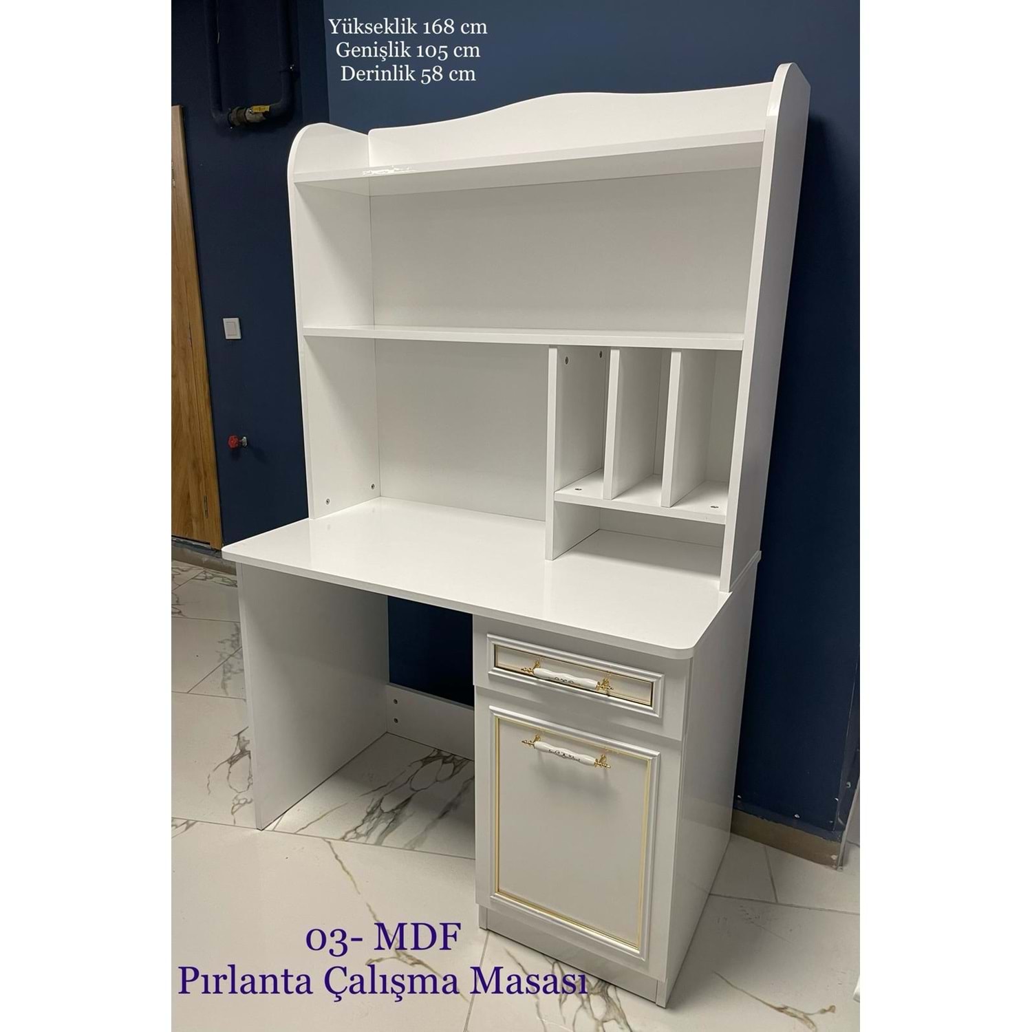 MDF Pırlanta Kitaplıklı Çalışma MAsası